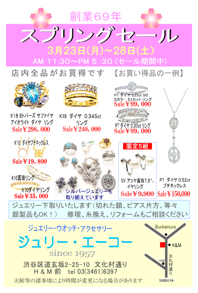 - 3月23日㈪〜28日㈯スプリングセール開催